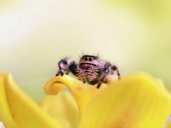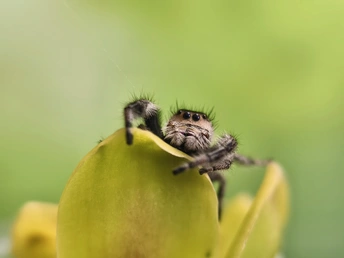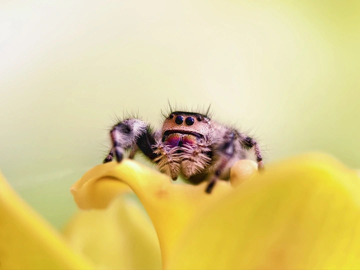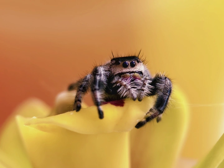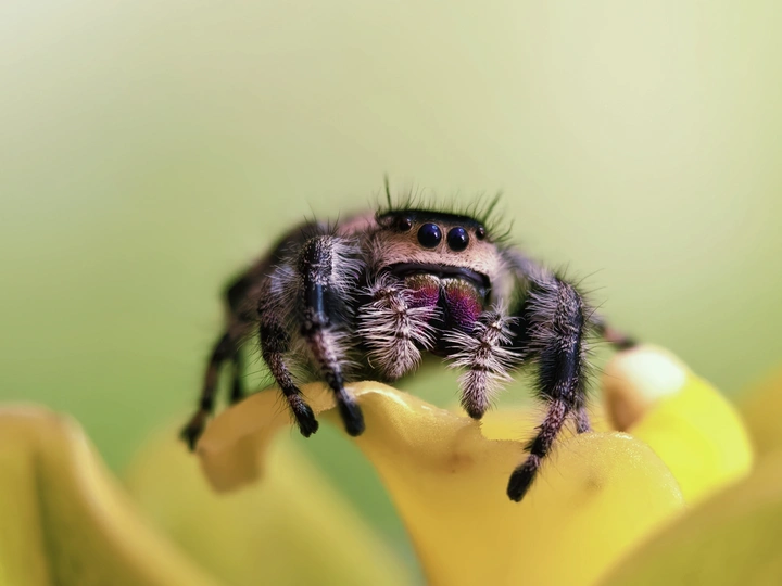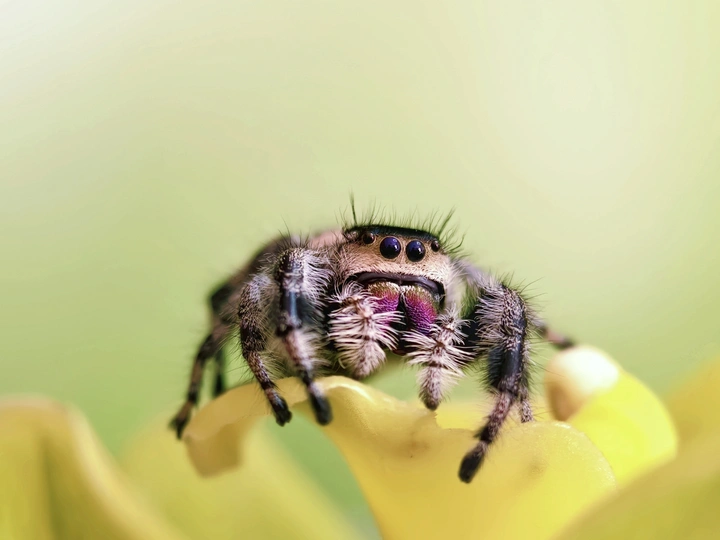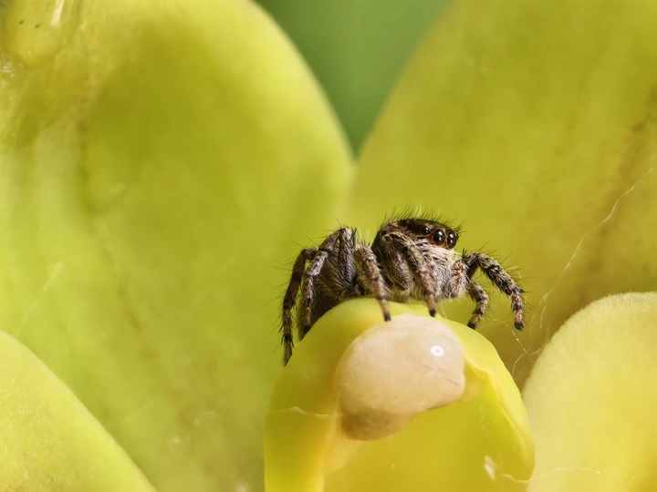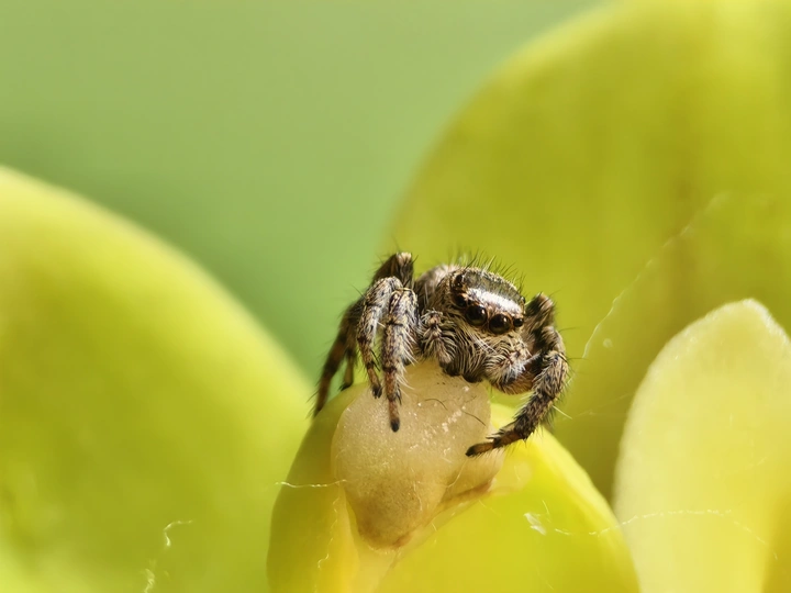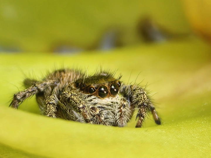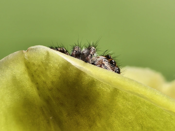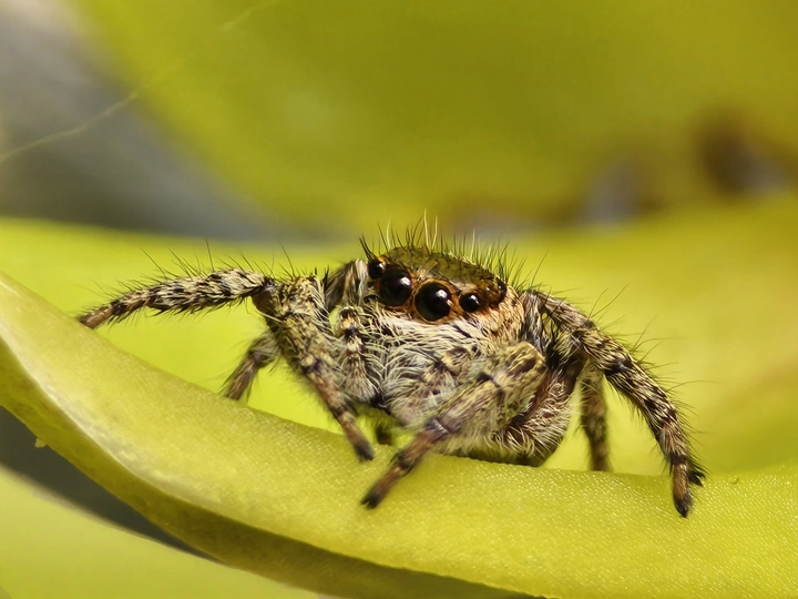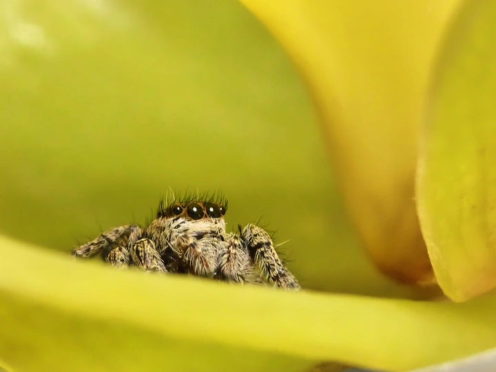 家里逮的小跳蛛养了一年多了,养了三只二只自家逮的,丢了几次又找到了,每次我拍它们的时候也不怕我,还往我身上跳,图一二三这只很听话,好像 认识我很配合,也认识自己的窝 , 自己回窝休息。