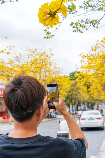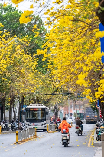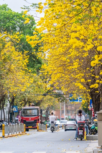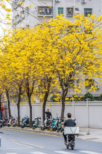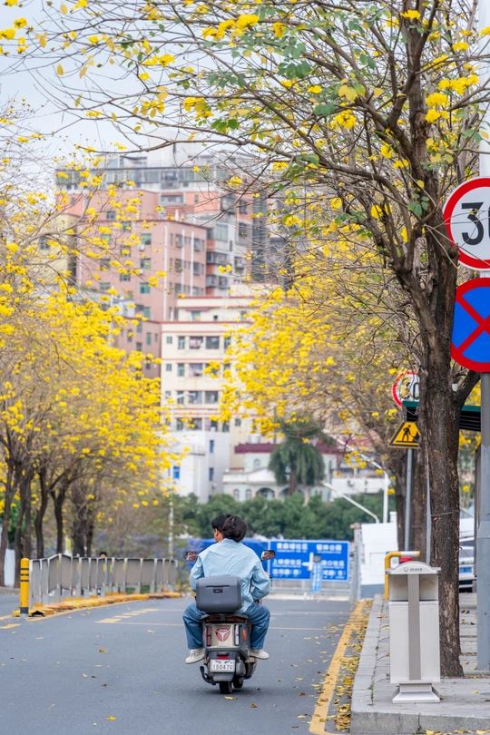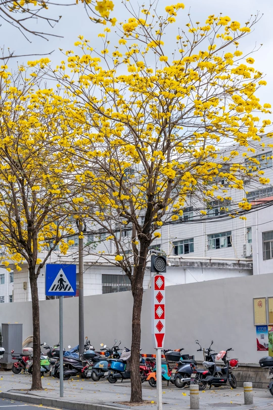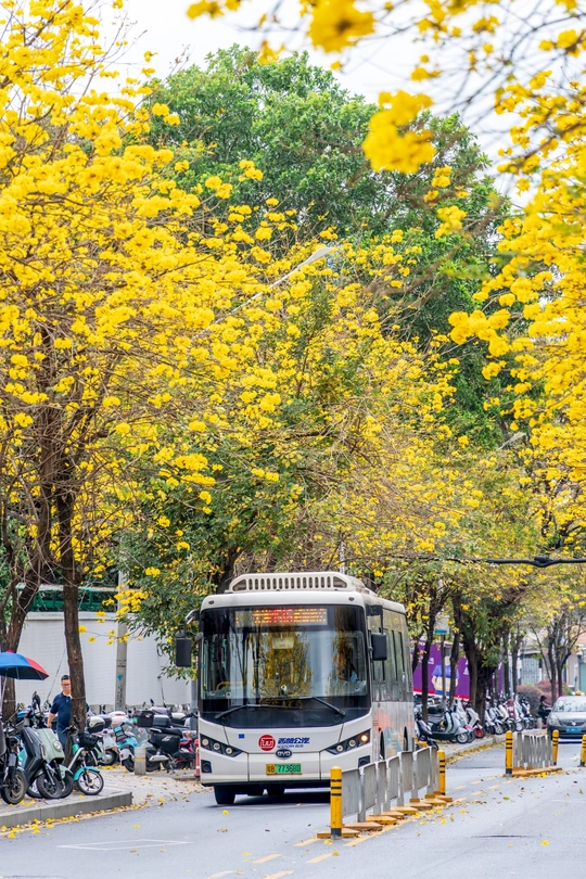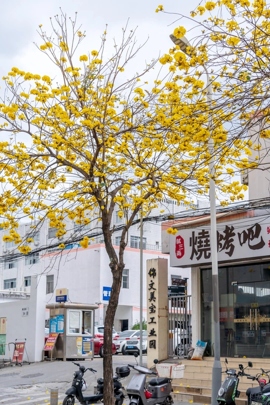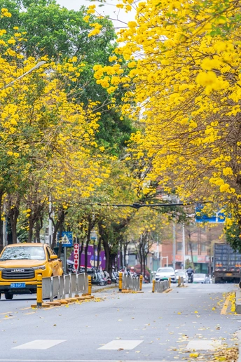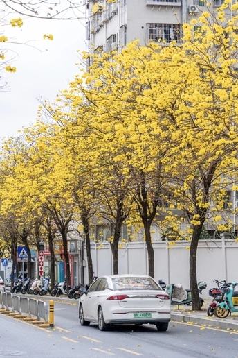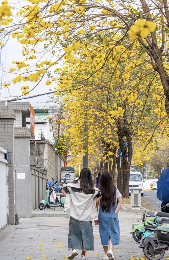 阳春三月,黄花风铃木如约而至,一树树金黄点亮了春日,也点燃了人们拍照的热情。