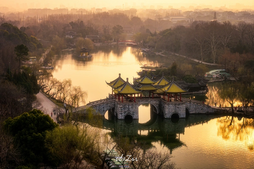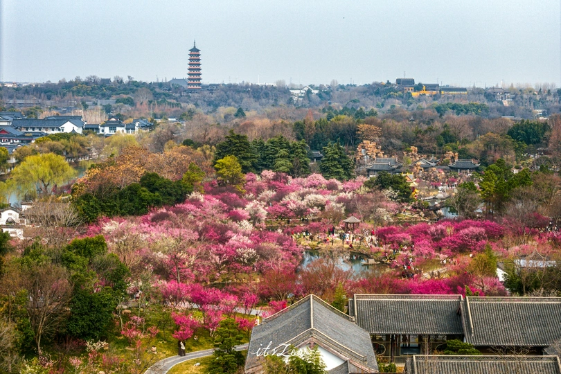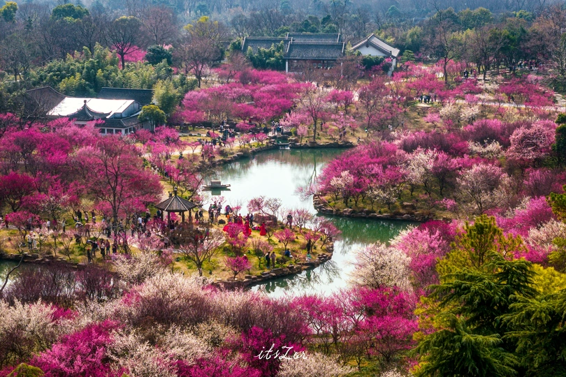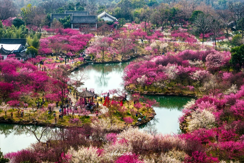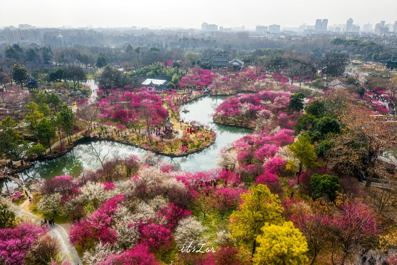疏影横斜暗香浮 “香中别有韵,清极不知寒”,每年立春过后,扬州瘦西湖千亩梅林悄然舒展腰肢,百余品种的数万株梅花次第绽放,为这幅千年画卷泼洒出第一抹春色。曲径通幽处,宫粉梅花如凝脂点染枝头,朱砂品种晕染出霞色深浅,绿萼孤高如碧玉雕琢,更有稀世墨梅晕开古典水墨意境,万千花影倒映二十四桥春水,恰似一幅天然"春波烟霭图"。 这片梅林匠心独运地沿湖逶迤五里,暗合古人"疏影横斜水清浅"的意境营造。游客漫行在青石曲径间,时而穿行檀心梅编织的香雪回廊,时而与临水照影的垂枝梅不期而遇。清风拂过,花瓣轻吻碧波,随红鳞游弋逐浪。慕名而来的画师常驻湖心吹台,饱蘸五百亩梅色,颜料未干就见白鹭衔香掠过。 扬州人制梅技艺传承千年,暗香阁里二十四道工序调制的梅花香膏,将盈袖暗香固作永年。每逢晨光熹微,五亭桥上风送冷香与梵钟清韵交叠,演绎着"楼台深翠微,钟磬落空山"的禅意交响。修竹深处偶现前人石刻"明月梅花一梦",道尽千年文人墨客对这份清绝之美的眷恋。 如今这处遗世独立之境已成为江南寻梅的至高秘境,当最后一瓣绿萼香陨波心,八重樱的浅绯已在二十四桥悄然酝酿,瘦西湖的春日长卷,正待徐徐展开新的篇章。