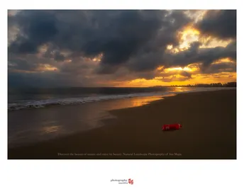 黄昏的海滩上,一个遗弃的红色饮料瓶很扎眼。保护生态环境、爱护我们生存的家园人人有责。