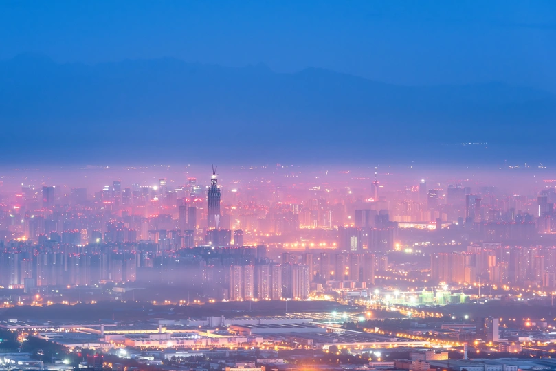 凌晨5点左右在龙泉山上俯瞰成都市区