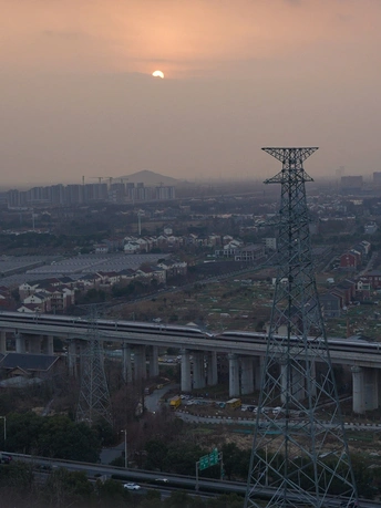 夕阳缓缓西沉,天边染上了一层金色的余晖,高铁如一条银色的巨龙,在暮色中疾驰而过。车窗外的风景飞速后退,山川、田野、城市在夕阳的映照下仿佛披上了一层柔和的光纱。高铁与日落共舞,仿佛在追赶着最后一缕阳光,奔向那暮色笼罩的远方。车厢内,乘客们或静坐沉思,或凝望窗外,仿佛在这光影交错的瞬间,感受到了时间与空间的奇妙交汇。这是一场速度与温柔的邂逅,也是一次向着希望与未知的旅程。