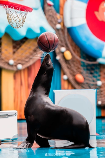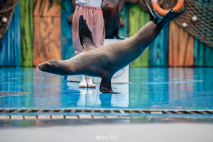成都海昌极地海洋公园的海狮表演是一场充满欢乐和惊喜的视觉盛宴。在这个表演中,我们可以看到那些聪明伶俐的海洋精灵——海狮,在训练师的指导下展示它们惊人的才艺。 ---------------------------------- ■ 相机:Nikon D800e ■ 地点:四川·成都
