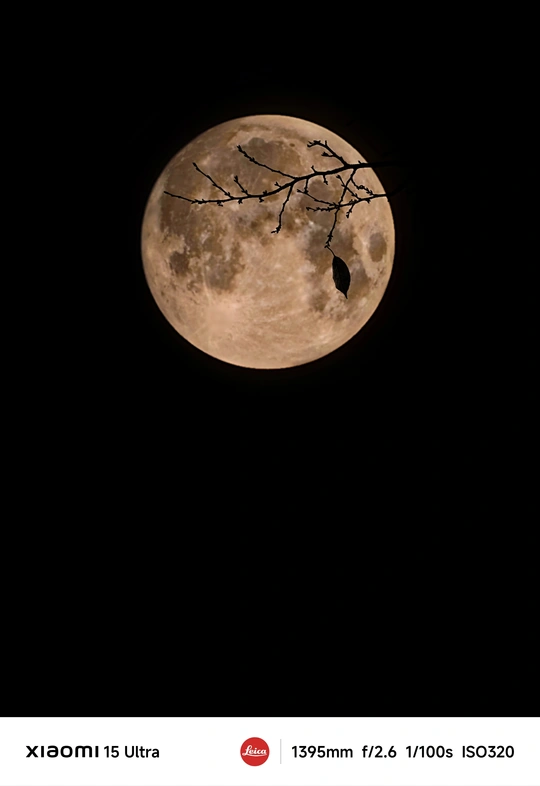 满月的日子,夜色阑珊。在这宁静的夜晚,圆月涌上枝头。