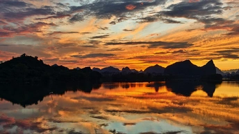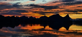 这组照片展示了自然风光中的黄昏美景,整体上具有令人愉悦的视觉效果,但在摄影艺术的评估上还有进一步提升的空间。 首先,从主题表达来看,三张照片共同表现了夕阳西下的宁静与美丽,展示了湖面和山峦的倒影。主题统一,使观者能够感受到并联想起那个时刻的神秘与静谧。但在叙事连贯性上,虽然有着相似的主题,但不同角度与构图之间的变化可以更好地引导观者的视线与情感。如果能够在拍摄时加入更多的前景元素,比如一些水鸟或漂浮的小船,可能会更加强化叙事的层次感。 其次,在风格统一性方面,颜色和光影的处理相对一致,展现了黄昏时分的柔和氛围。从色彩运用上看,橙色与蓝色构成了强烈的对比,给人以视觉冲击。但在光影的把握上,某些区域过暗,导致细节损失,尤其是在靠近山峰的部分。可以考虑在拍摄时调整曝光度,或者后期适当提亮,增加细节的展现。 关于镜头语言的使用,三张照片通过不同的拍摄角度展现了同一场景,但可能在构图上还有改进的余地。例如,可以尝试应用黄金分割或者三分法则,使得画面更具平衡感。另外,湖面反射的利弊在于,某些角度可能会因为反射而使得主体的空间感变得模糊,适当调整拍摄角度以突出主体可以提升作品的表现力。 从故