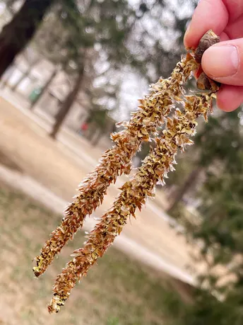 小时候,一到春天,杨树挂满“毛毛虫”,吓得我直躲,后来才知这是杨树花穗,是春的浪漫。 近看,花穗毛茸茸,像迷你小玉米、绿色小鞭炮 ,风一吹,枝头晃动,簌簌掉落,给大地铺层绒毯。 看到杨树花穗,就想起童年和小伙伴在树下嬉笑,用树枝挑花穗,假装勇敢骑士和“毛毛虫”战斗。 春天街头遇见它,不妨停下捡起,感受这份春日礼物,说不定也能勾起你心底的美好回忆💕 #春日奇妙物语 #杨树花穗 #童年回忆杀