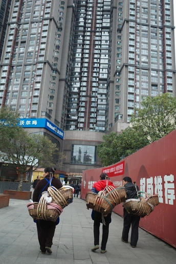 走街串巷的时候,发现三个赶场结束的人。看上去,今天的生意不错。