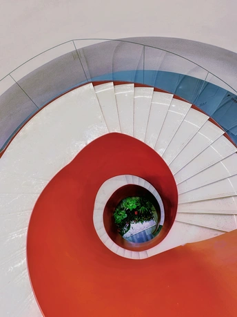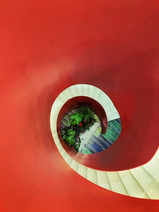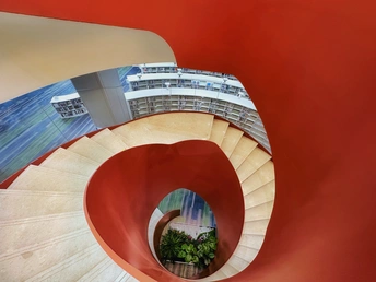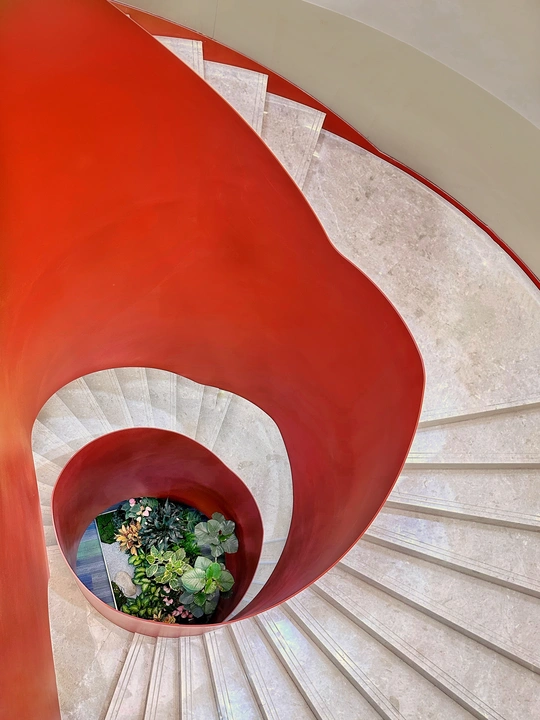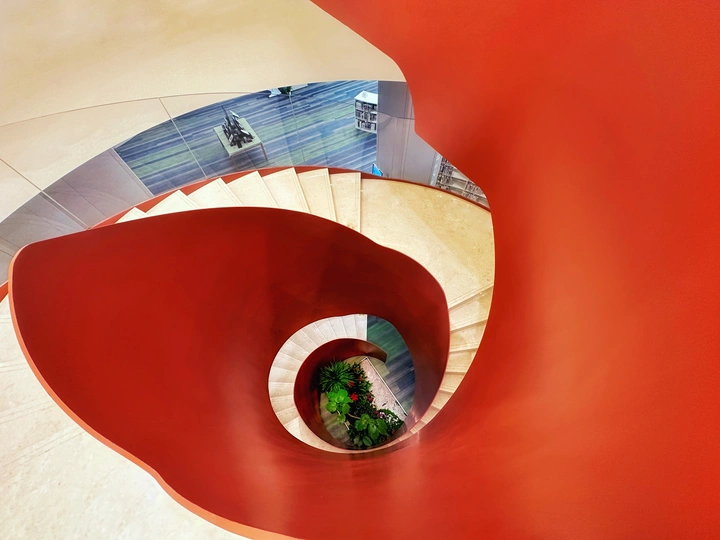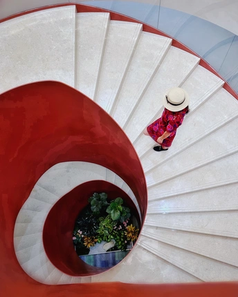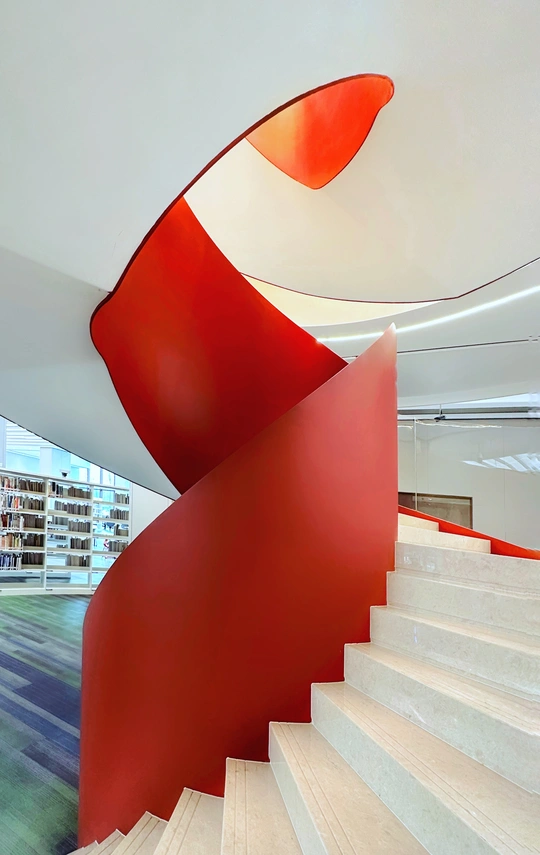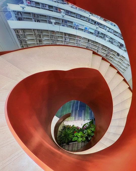 图书馆内的红色旋梯,从上拍到下,拍得不亦乐乎。