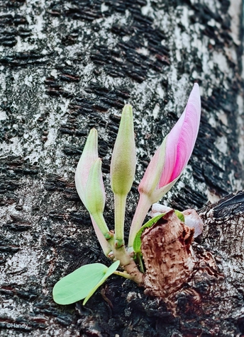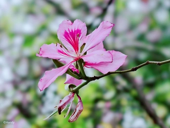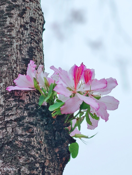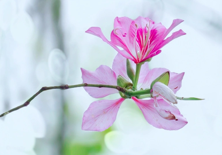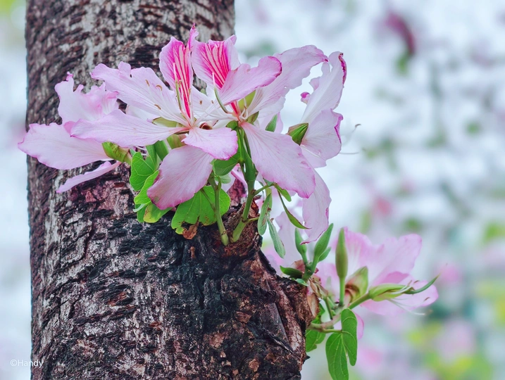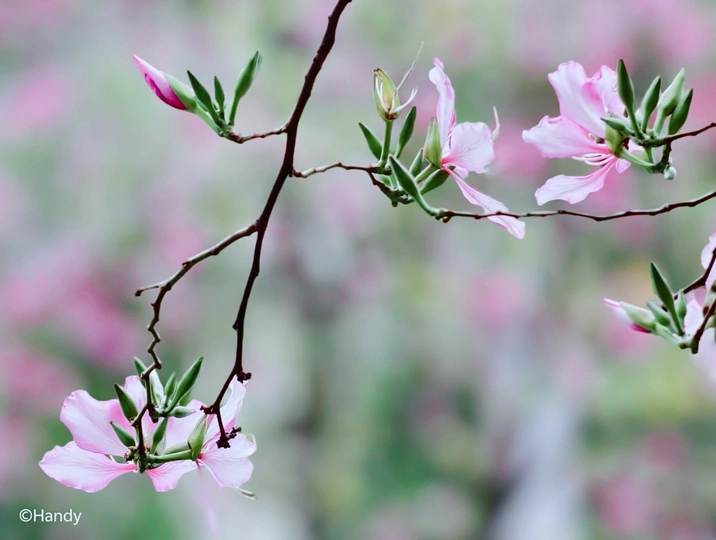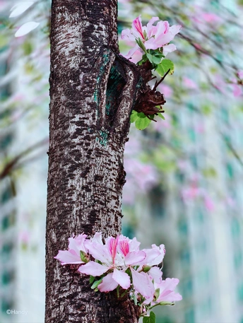 新枝折断的断面渗出 青涩树脂与阳光勾兑的蜜 风搬运着草汁爆裂时 溅落的透明音节 晾晒三季的雨水终于滤净凛冽 融进第一朵紫荆花瓣初绽的颤音 你弯腰系鞋带时 领口漏出的体温正在发芽