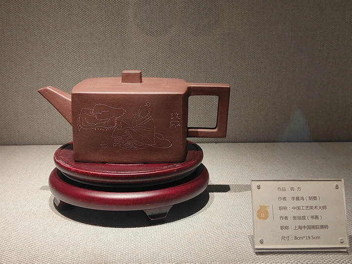 摄影上海龙现代艺术中心。展馆宽阔,展架成排 展品琳琅满目。特别欣赏三维造型的这几个紫砂壶和二维造型的这几幅画作。艺术美感让人赏心悦目,赞叹不已。选了正面几位进行了拍摄。