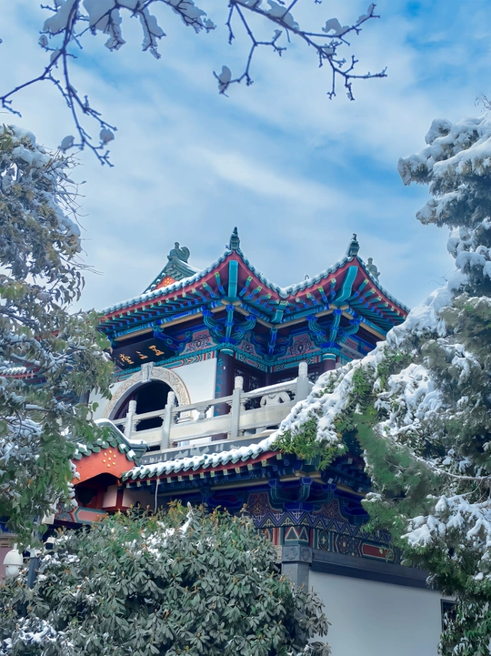 在趵突泉景区,拍摄了雪中的古建筑,表现雪中古建筑之美。