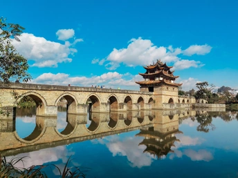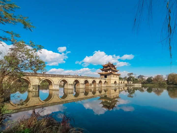 【图龙原创摄影】用手机发现身边的美|云南建水双龙桥始建于清朝乾隆年间,横跨泸江与塌冲河交汇处。因两河蜿蜒如双龙盘踞,故称“双龙桥”。后河水泛滥,河床逐渐加宽,三孔小桥被困河中,不能横贯两岸,清道光十九年(1839)又将最初的三孔石拱桥扩建至十七孔,又名“十七孔桥”。 ---------------------------------- ■ 手机:HUAWEI Nova5 Pro ■ 地点:云南·红河哈尼族彝族自治州