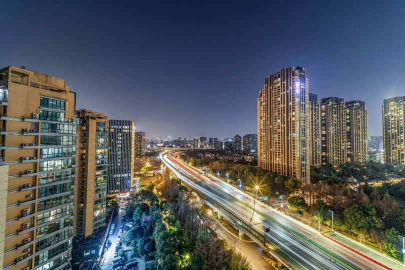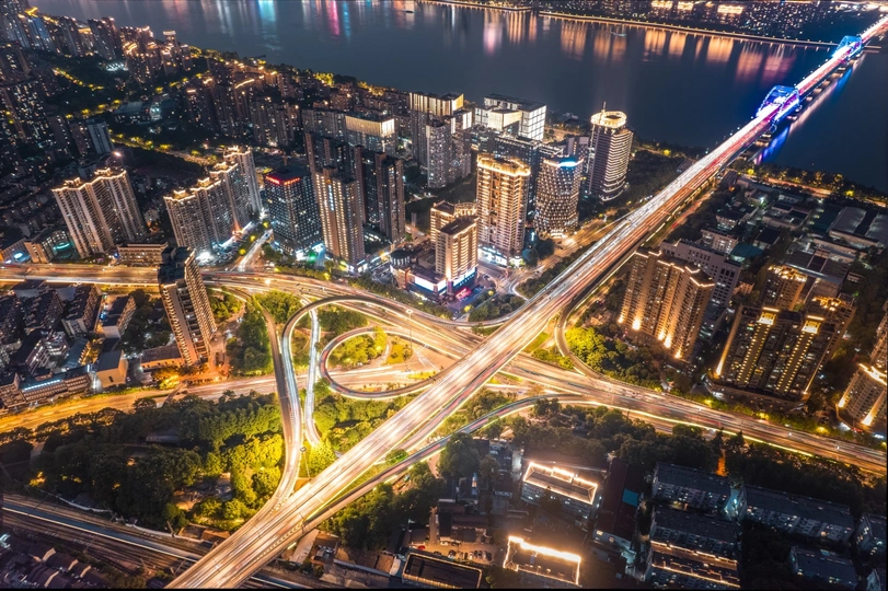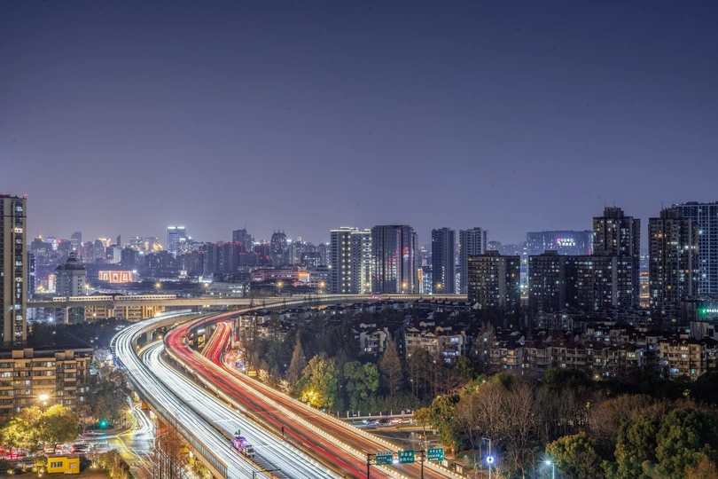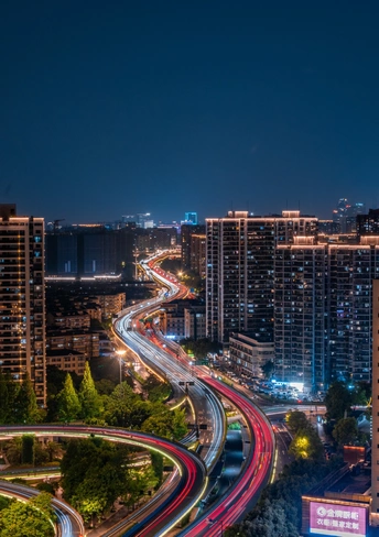 穿梭的车灯在夜色中交织,冷暖色碰撞出流动的诗意蜿蜒的光轨如城市血脉,勾勒出机械与自然的浪漫对话长曝光下的时空褶皱,藏着车水马龙的璀璨密码。