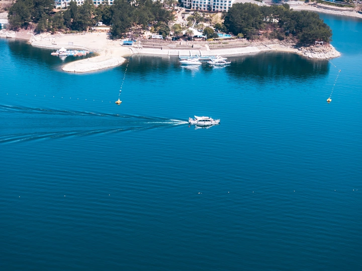 #风景# #风光# #航拍# #无人机# #大疆# #大自然# #湖面# #游艇# #哈苏#