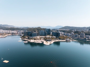 我一直渴望一场远离喧嚣的旅行,终于在这个春日,来到了这片宁静的湖泊。初见这片湖水,那澄澈的蓝色便瞬间抓住了我的心,宛如一块巨大的宝石镶嵌在大地之上。 我登上游船,随着水波荡漾前行。船尾留下的白色航迹,像是在蓝色画布上随意挥洒的线条,记录着我的探索之旅。湖中的小岛星罗棋布,岛上绿树成荫,偶尔还能瞥见隐藏在林间的建筑,仿佛是大自然与人类文明的奇妙融合。 沿着湖岸,现代化的高楼与休闲设施映入眼帘。码头边整齐排列的游艇,像是随时准备开启冒险的骑士。岸边的沙滩与休闲区,洋溢着轻松惬意的氛围,人们在这里享受阳光与湖水带来的愉悦。 我穿梭在不同的景致间,用相机定格每一个心动瞬间。从高空俯瞰,城市与湖景相互映衬,既有现代建筑的规整大气,又有自然山水的灵动秀丽。这些照片不仅是美景的呈现,更是我在这片湖光山色中,寻得内心宁静与美好的见证。当旅行结束,这些画面会成为我记忆中珍贵的宝藏,在日后的时光里,不断唤起这段悠然的旅程。