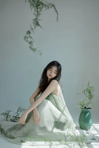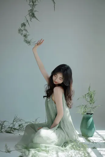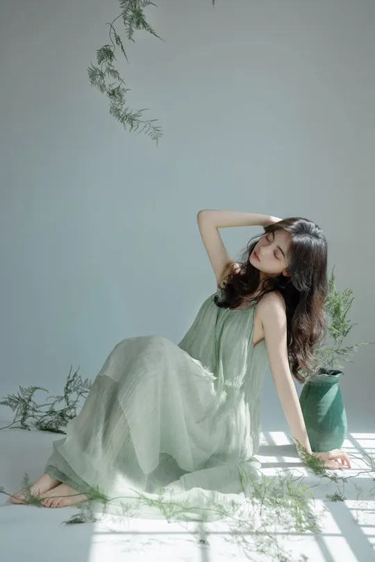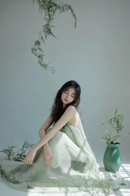 自然光穿透纱帘,与桌边新绿的龟背竹撞个满怀🌿 一袭薄荷绿纱裙随光影摇曳,发丝间别着山茶花,春日的温婉与灵动就这样被定格~ 无需远行踏青,影棚里也能拥抱春天✨ 绿植点缀+柔光滤镜=把整个季节装进镜头里 📸拍摄Tips: 1️⃣低饱和纯色背景更显高级感 2️⃣局部绿植道具增添呼吸感 3️⃣浅色系服装与春日光影绝配