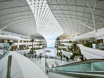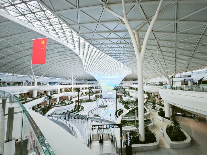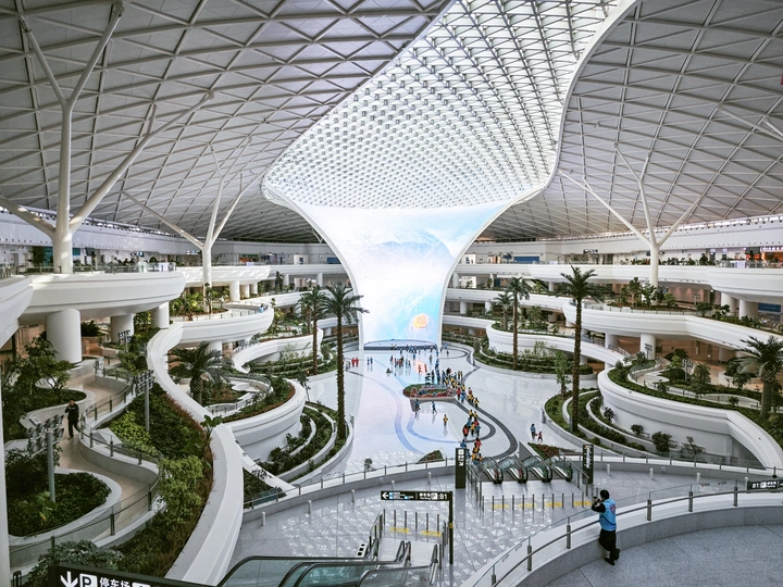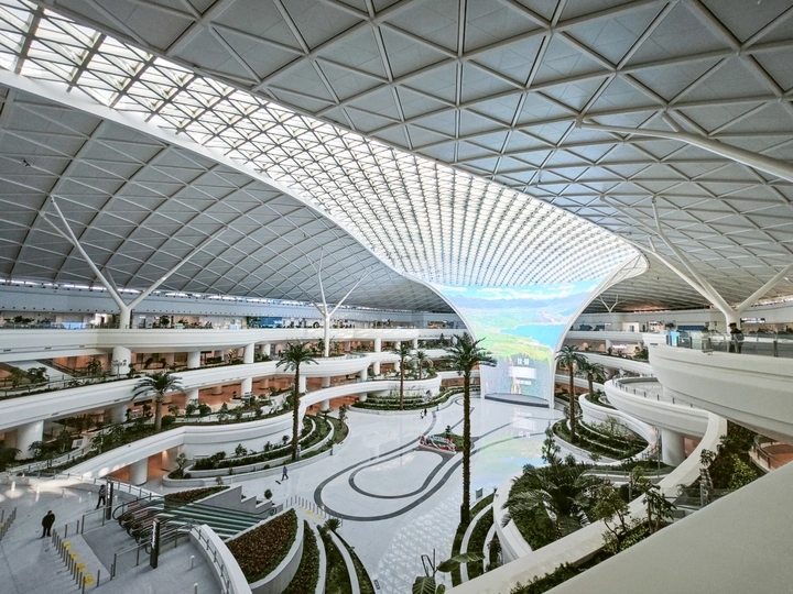 ### **基础信息** - **地理位置**:兰州新区中川镇,距兰州市区约70公里。 - **航站楼规模**: - **建筑面积**:约40万平方米(含综合交通中心)。 - **设计容量**:年旅客吞吐量3000万人次,远期可扩展至4000万。 - **机位数量**:近机位35个,远期规划共75个。