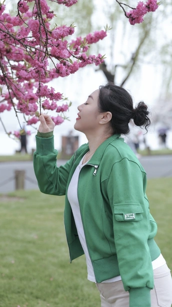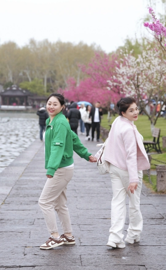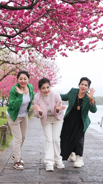 在杭州西湖风景名胜区断桥,三位美女在尽情的摆姿拍照,对于她们来说,杭州的西湖足够的美,加上鲜艳的樱花,桃花盛开。心情格外开心。