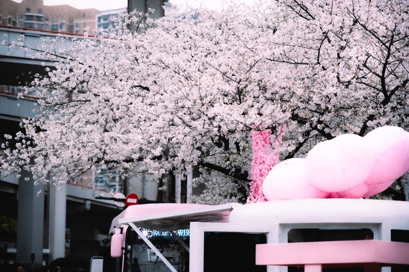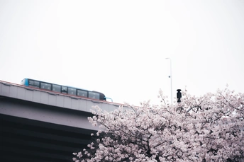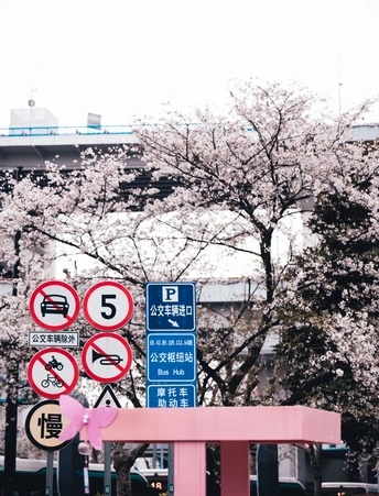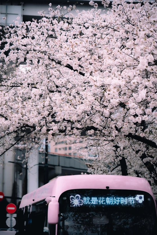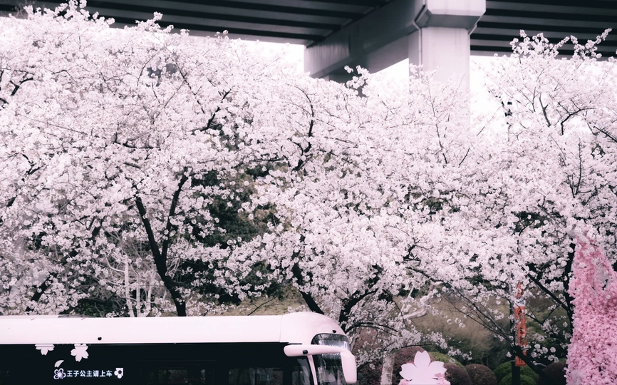 拍摄于南浦大桥下的公交枢纽,场地樱花树不多,好在盛开时氛围比较好,给众多奔波赶公交的打工人一抹春色与好心情。