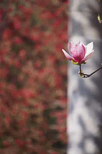 春日暖阳里,一朵玉兰悄然绽放。粉白的花瓣,似少女羞涩的笑靥 。它在枝头独自优雅,不与繁花争艳,却以一抹纯净之色,晕染出整个春天的温柔。