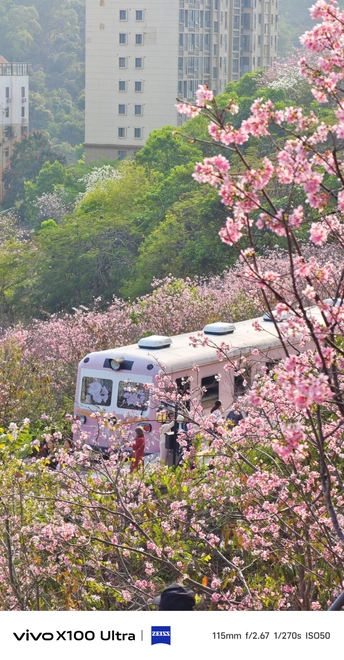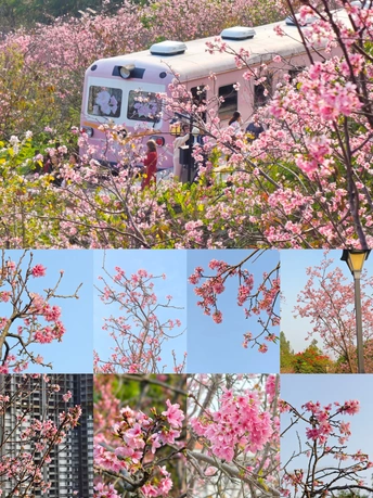 本以为深圳是樱花荒漠… 直到遇见这里飘落的粉色花雨? 虽然规模比不上武汉,但人少免费还要啥自行车!”