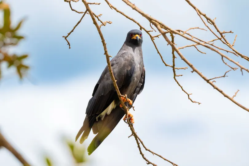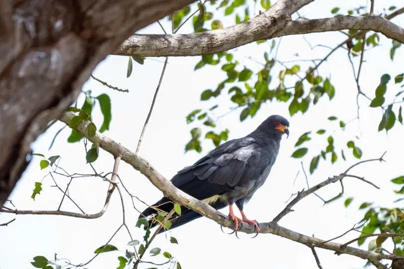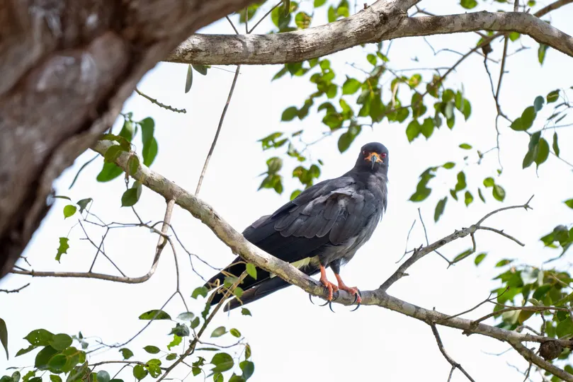 螺鸢(学名:Rostrhamus sociabilis)是巴西潘塔纳尔湿地(Pantanal)中一种引人注目的鸟类。这片湿地位于巴西中南部,横跨马托格罗索州和南马托格罗索州,并延伸至玻利维亚和巴拉圭,是世界上最大的热带湿地之一。螺鸢以其独特的生活习性和生态角色在这一地区尤为重要。 螺鸢的特点 螺鸢是一种中型猛禽,属于鹰科(Accipitridae)。它的喙细长且呈钩状,非常适合从螺壳中取出软体部分,这也是它名字的由来。螺鸢几乎完全以苹果螺(Pomacea属)为食,这种专食性使得它高度依赖湿地环境,因为苹果螺主要生活在淡水沼泽和湖泊中。雄性螺鸢通常呈深灰色,眼睛和腿部为红色,而雌性则偏棕色,带有白色条纹。 在潘塔纳尔湿地的生活 潘塔纳尔湿地为螺鸢提供了理想的栖息地。这里的季节性洪水和丰富的淡水生态系统孕育了大量的苹果螺,支撑着螺鸢的生存。螺鸢通常在水面上低空飞行,寻找猎物,然后用爪子迅速抓住螺,飞到附近的栖木上享用。它们还以群居著称,常在湿地中形成大型的冬季栖息群,有时与其他水鸟如鹭类和蛇鹈混居。 在潘塔纳尔,螺鸢被认为是一种常见的鸟类,种群数量相对稳定。
