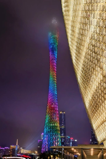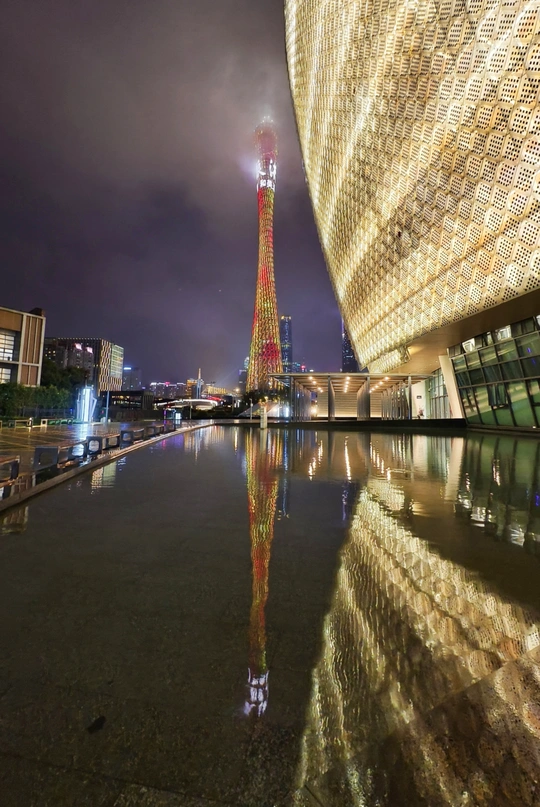 在细雨纷飞的夜晚,广州艺术博物院显得格外迷人。其建筑轮廓在灯光的映衬下,如同一幅精致的画卷,静静地展现在世人面前。不远处,广州塔璀璨夺目,与博物院交相辉映,仿佛在无声地诉说着这座城市的历史与文化。