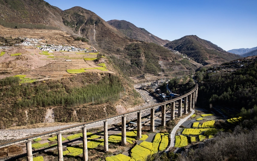成昆铁路复线通车后,老铁路已很少有列车通过,像退休的老人,随着岁月沉寂下来,这乃托镇的工厂和田野被铁道分开,只有山风和放学的孩童将他们连接,想起声玩的那首歌词:穿越工业区穿越过梯田,相遇铁道的另一边。
