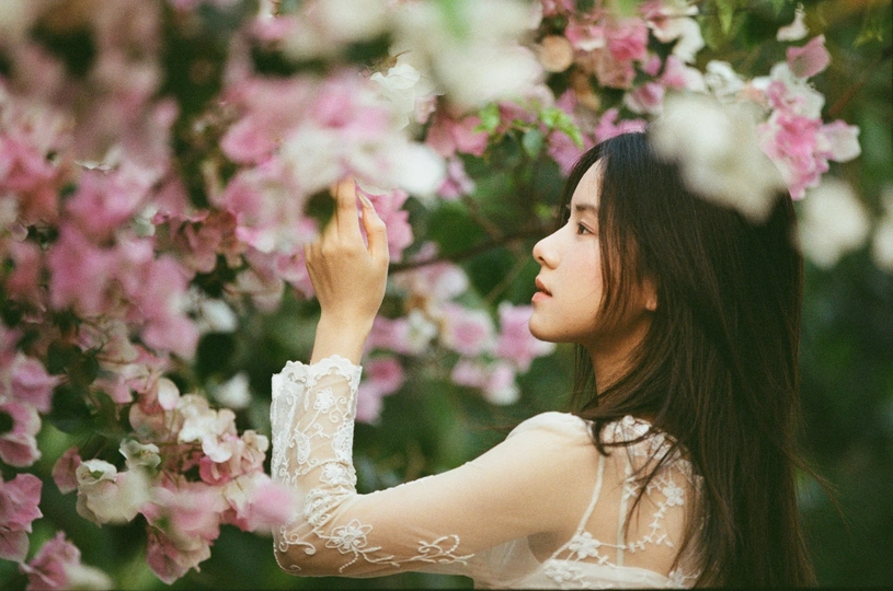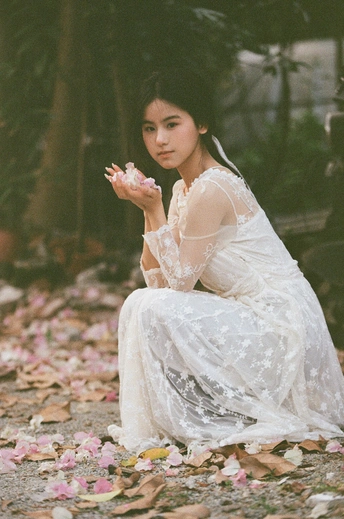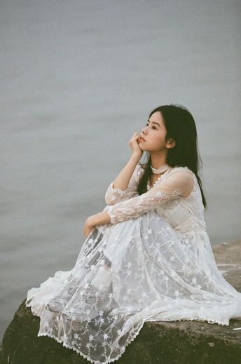 在湖畔的石上,她身着一袭白纱。蕾丝轻舞,似是月光遗落的梦。眸光飘向远方,思绪在水波间荡漾。风,悄悄撩动她的发丝,时光于此刻静谧,仿若一首无声的诗,诉说着不为人知的温柔与惆怅。