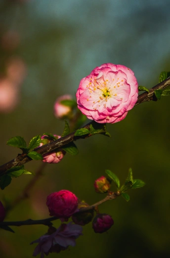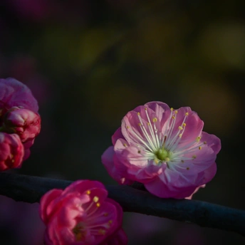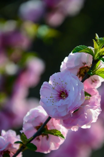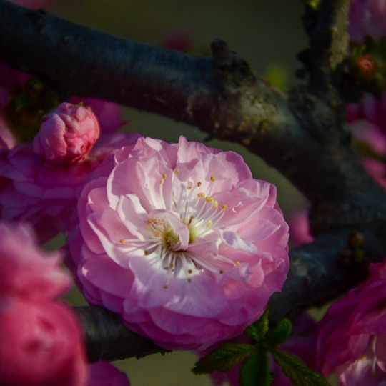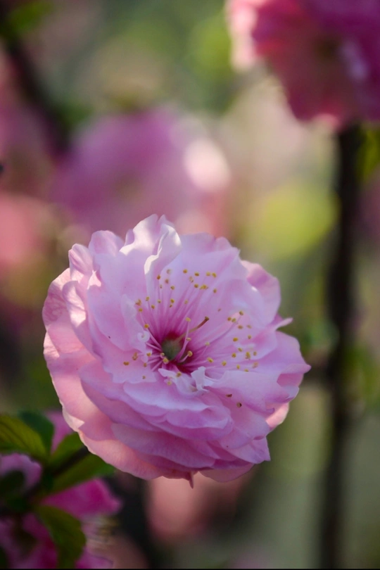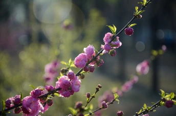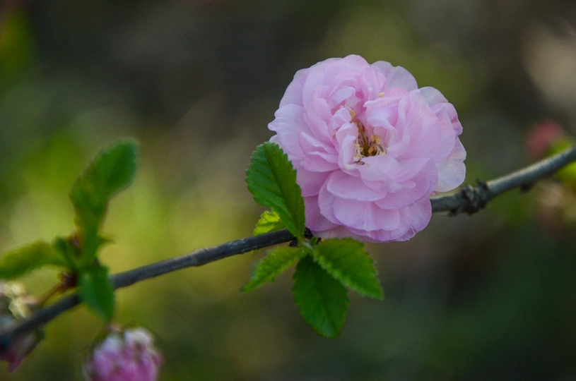 榆叶梅,是蔷薇科李属灌木稀小乔木植物 。榆叶梅枝条开展,具多数短小枝;叶片宽椭圆形至倒卵形,先端短渐尖,叶边具粗锯齿或重锯齿;花果期4-7月;花先于叶开放;雄蕊短于花瓣,花柱稍长于雄蕊;果实近球形,红色,果肉薄。 因其叶片像榆树叶,花朵酷似梅花而得名榆叶梅。