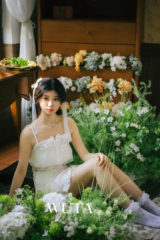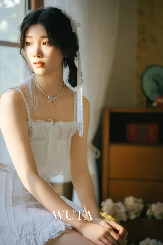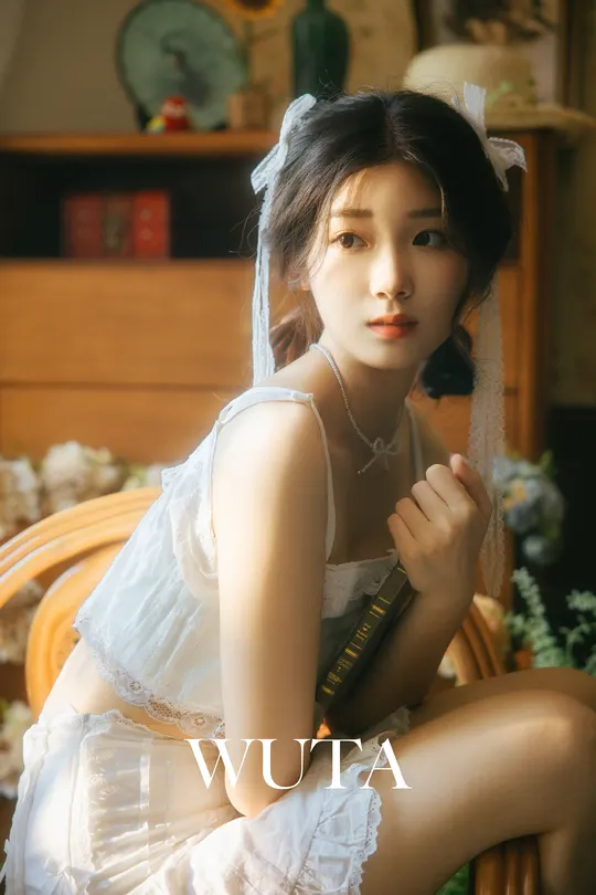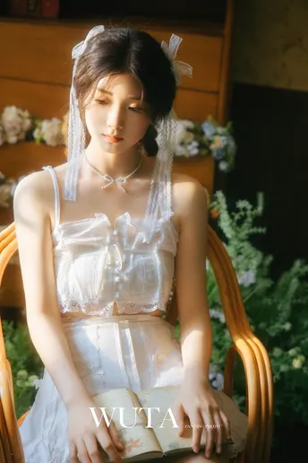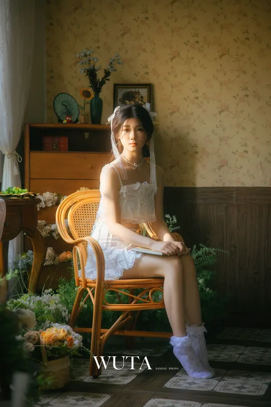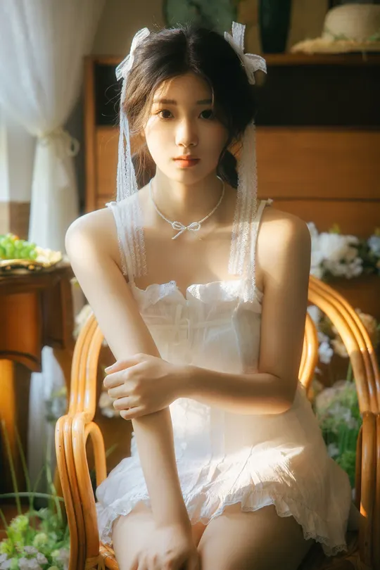 午后三点的阳光是位温柔的叙事者,透过蕾丝窗帘为场景蒙上柔纱。藤编椅上的少女如从莫奈画中走来,蕾丝裙摆与白袜在光晕里晕染出朦胧边界,膝头摊开的书页正被风掀起第一页心事。