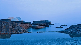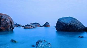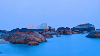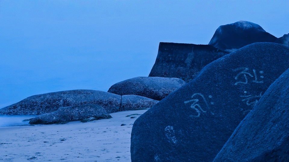 退潮后的玄武岩群如外星巨兽褪下的鳞甲,在琥珀暮光中泛着冷金属光泽。浪蚀沟壑间玫瑰金与靛蓝光影流转,似远古熔岩与赛博能量场产生量子纠缠。指尖划过岩层棱纹,地底传来机械齿轮的嗡鸣,不知是沉睡的变形金刚源代码,还是地球岩脉自带的科幻叙事。咸涩海风裹挟着星际电磁波的频率,在时空褶皱处撕开虫洞的微光。