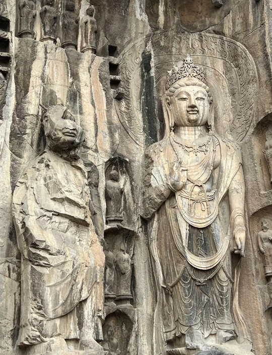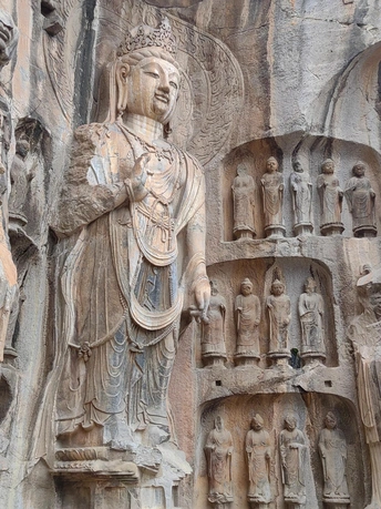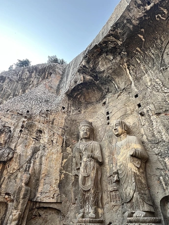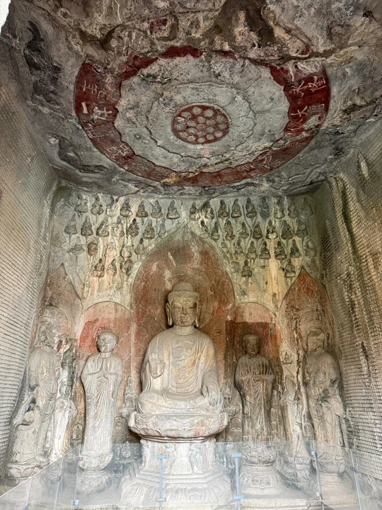 踏入龙门石窟,仿若步入一座穿越千年的艺术殿堂。它坐落于河南洛阳,始于北魏,历经东魏、西魏、北齐、隋、唐、北宋,断断续续营造长达400余年 ,现存窟龛2345个,造像10万余尊,碑刻题记2800余品,是世界上造像最多的露天石刻艺术博物馆,也被誉为中国石刻艺术的最高峰。 北魏时期的造像,带着“秀骨清像、褒衣博带”的中原风格,线条简洁质朴;唐代则呈现出“躯体丰腴,面相圆润”的大唐风范,彰显着盛世的雍容华贵。站在卢舍那大佛面前,17.14米的通高令人心生敬畏,其丰满圆润的面部、微微下视的双眸,似带着慈悲与智慧俯瞰众生,雕刻之细腻,神情之生动,让人不禁感叹古人的鬼斧神工。 古阳洞、宾阳中洞、莲花洞等洞窟,各自承载着独特的历史与文化。漫步其间,抚摸着斑驳的石壁,看着那或完整或残缺的造像,历史的厚重感扑面而来。这不仅是一场视觉的盛宴,更是一次与历史的深度对话 ,每一尊佛像、每一处碑刻,都在静静诉说着往昔的故事 ,让人流连忘返。