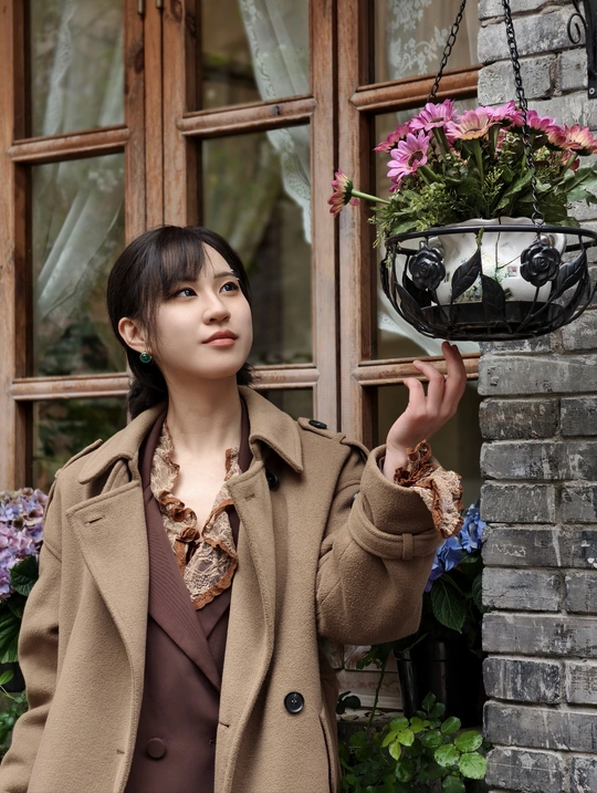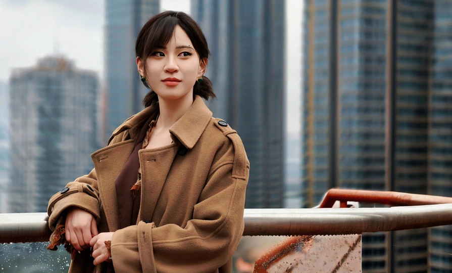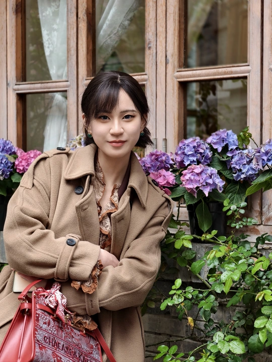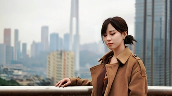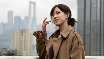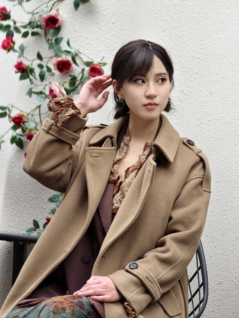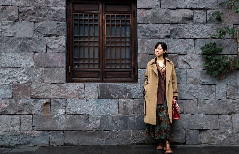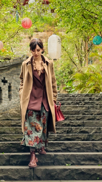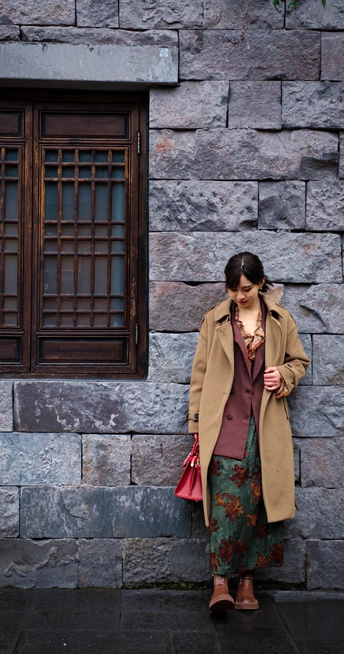 拍摄于十八梯,复古石墙石阶与现代时尚女子