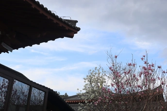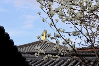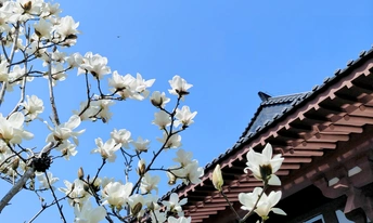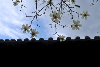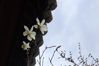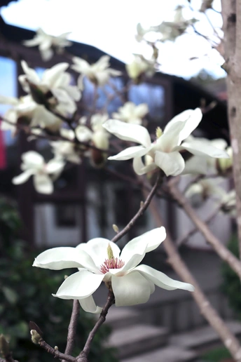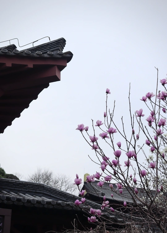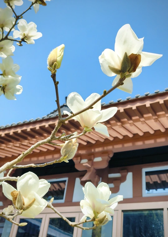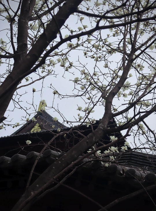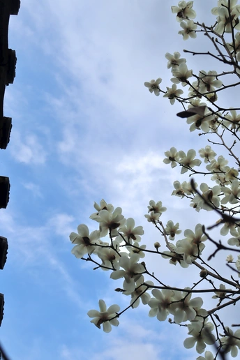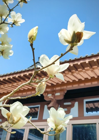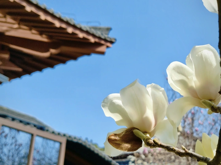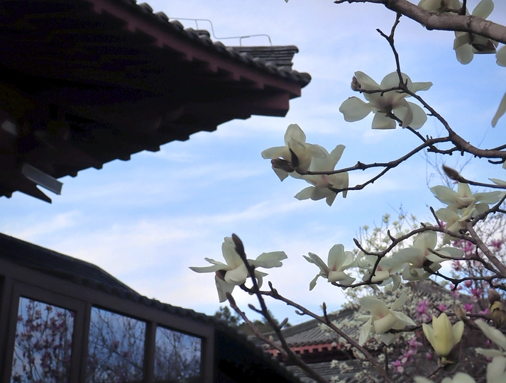 古寺里的玉兰花,朵朵皆有灵性。玉兰清贵书难尽,半是琉璃半是禅。
