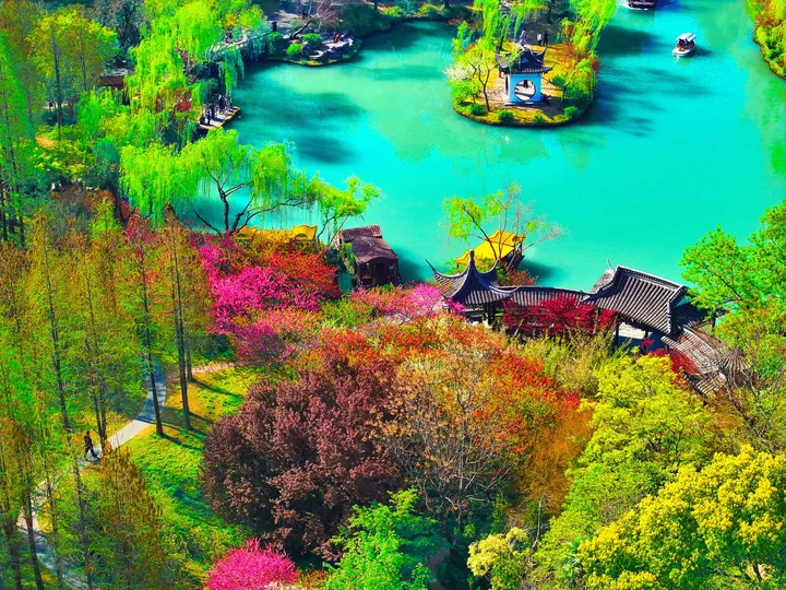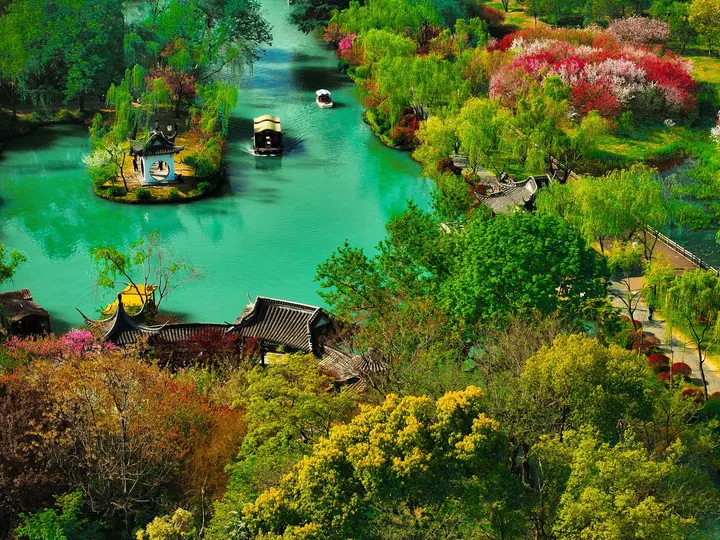 瘦西湖位于扬州城西北郊,因其水道蜿蜒曲折、湖面时宽时窄而得名。这座充满诗情画意的园林湖泊,凝聚着中国古典园林艺术的精华 游人如织笑语喧, 却惊不起水中鸳。 谁家玉笛暗飞声, 散入春风满湖城。 瘦了西湖肥了诗, 千年文脉此中滋。 今朝我亦来寻句, 不负江南一段痴。