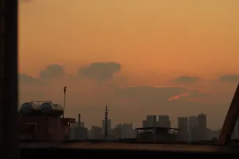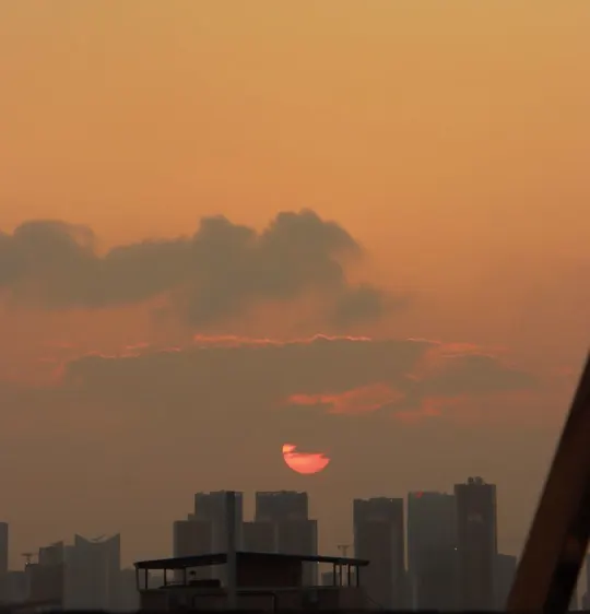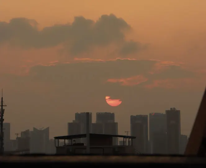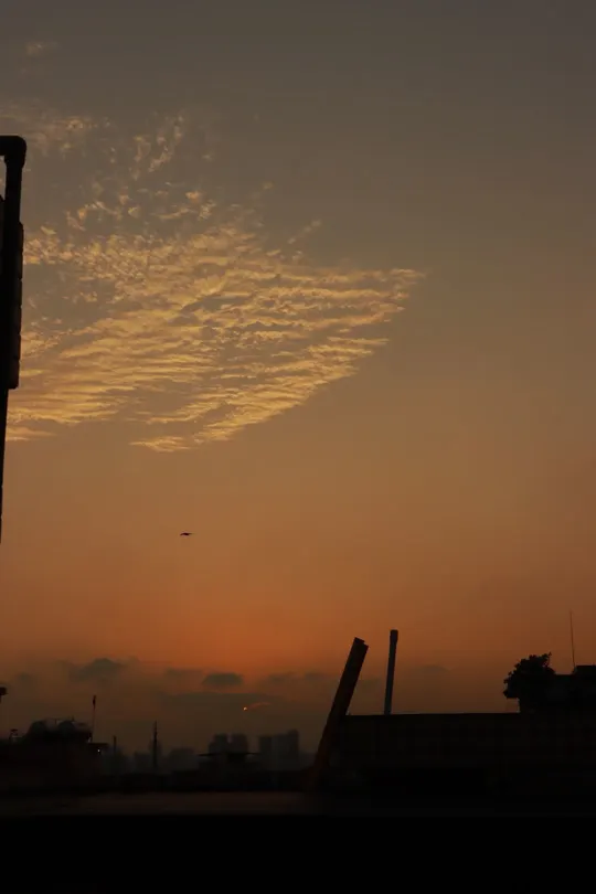 《落日余晖》—天边燃起橘色篝火,云朵被烤得通红,连风都带着微醺的甜。