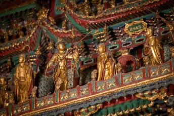 这座始建于明崇祯七年的悬空佛寺,藏着让梁思成都惊叹的"悬塑绝唱",踏入大雄宝殿的瞬间,仿佛被三千佛陀的目光温柔包裹。满殿彩塑像星河倾泻而下,飞天在藻井起舞,菩萨衣袂生风,每一寸空间都绽放着极致的东方美学。