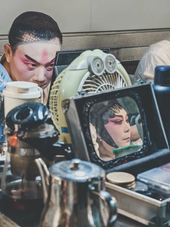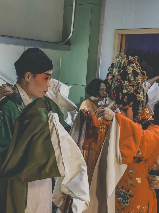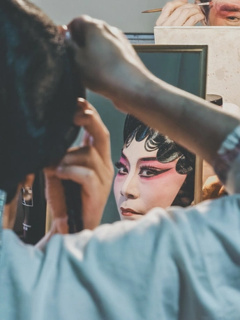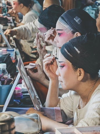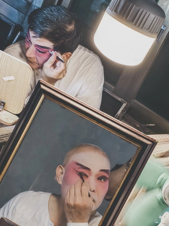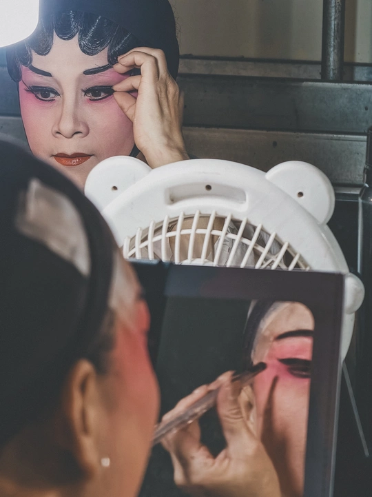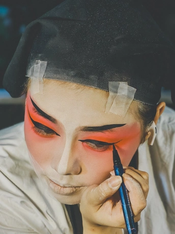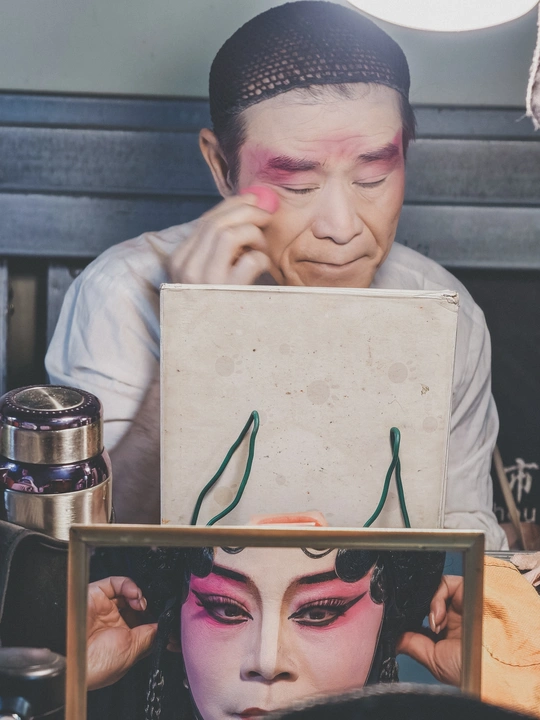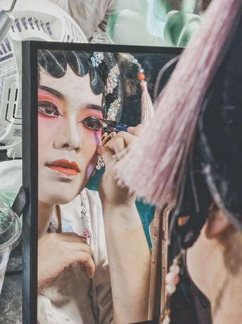 在后台的一方天地里,戏曲演员们精心勾勒眉眼,晕染色彩。一笔一划,皆是对角色的雕琢;一饰一容,尽显戏曲的瑰丽。他们于幕后沉淀,将以最动人的姿态,绽放在舞台之上,传承那千年流转的艺术风华。