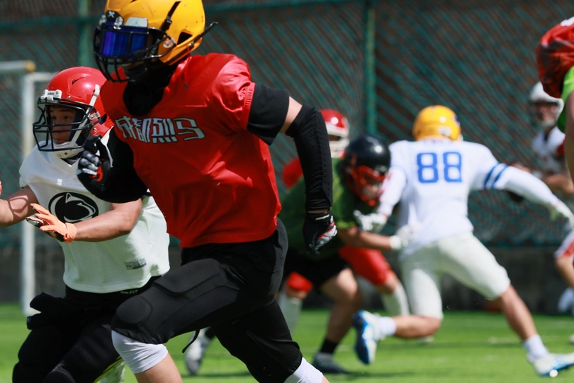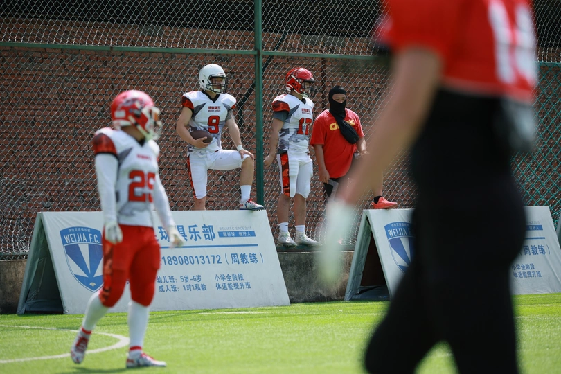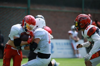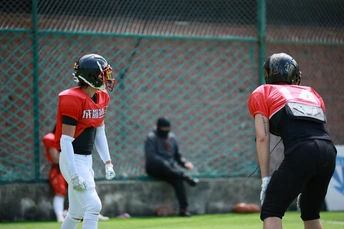 天气太热了,37℃ 地点:成都皇家足球场 机器:R3 镜头:RF70-200F2.8Z 光线:非常好 快门速度:1/2000都可以满足 光圈:自动 IOS:自动 不足:接球精彩瞬间,抓不到 进步:无 感想:训练场的橄榄球拍摄,慢慢有点经验了。