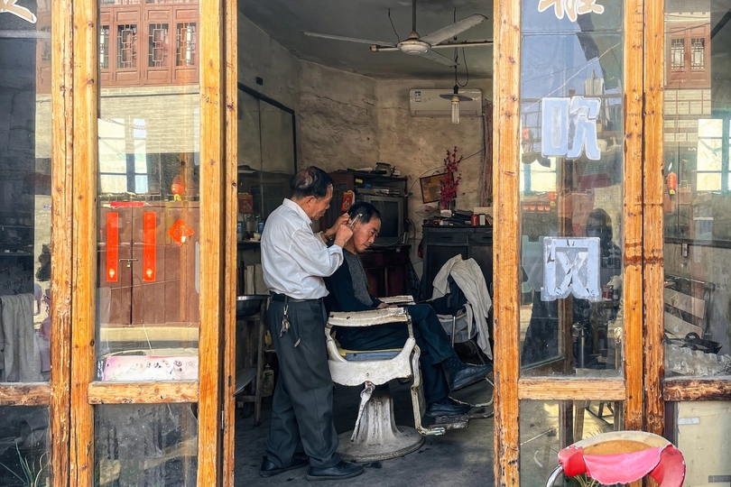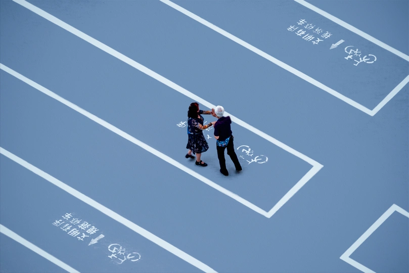 P1 南京无梁殿前晨练的老人 P2 安阳县前街坐看热闹的老人 P3 南京明孝陵晨雾中的秋色 P4 兴化金东门蹒跚的背影 P5 兴化沙沟古镇的旧式理发店 P6 南京钟山体育公园里的闲适 P7 安阳的街道上晨色里的畅聊 P8 南京晓庄附近停车场里的舞蹈 P9 威海幸福门公园海边的招呼