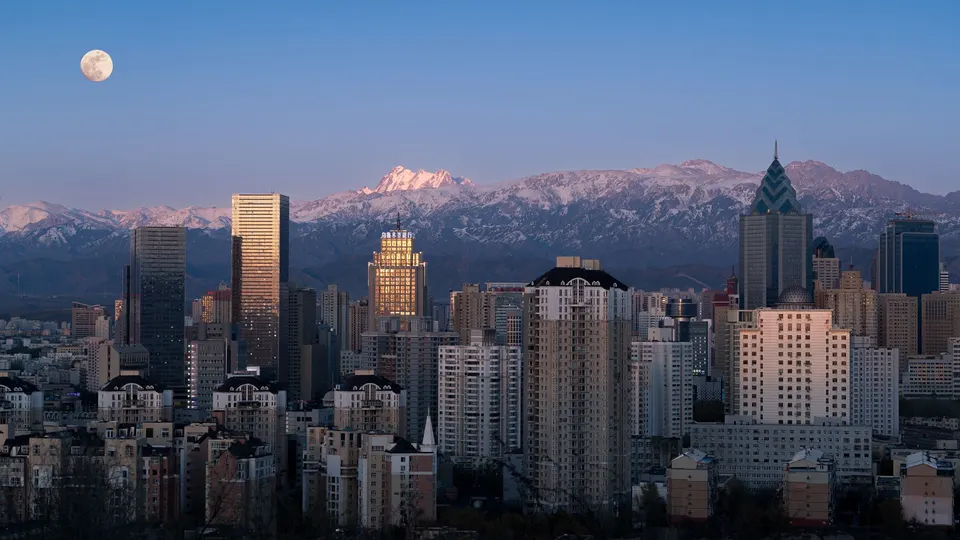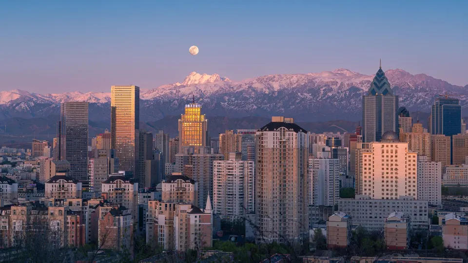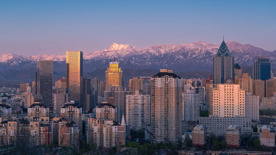 乌鲁木齐雅山的城市景观与日照金