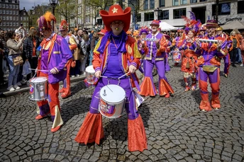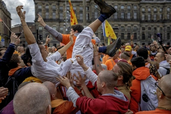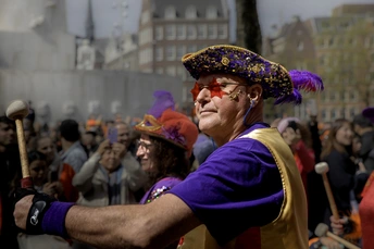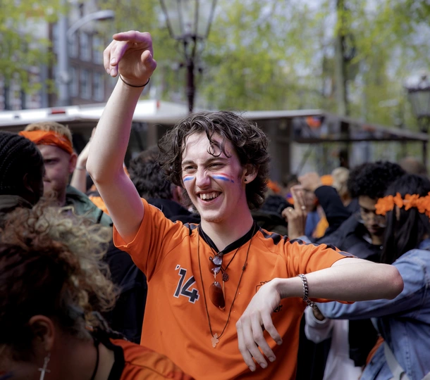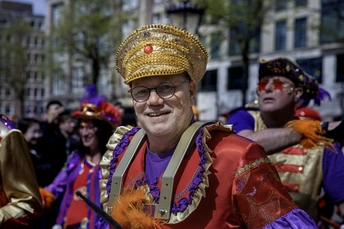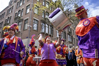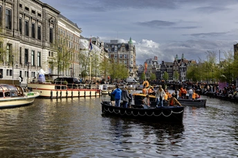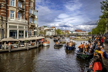 国王节是荷兰庆祝国王生日的一个全国性节日,是荷兰最隆重盛大的节日。荷兰现任国王威廉•亚历山大诞生于1967年4月27日,所以他继位以后,从2017年开始,每年的国王节定为4月27日。 国王节这一天举国欢庆,但所有庆祝活动非官方主办,而是民众自发的。这一天从清晨开始,无论皇室还是普通民众,人们会穿上代表荷兰皇家的颜色——橙色的衣服,佩戴各种橙色的服饰、装备,面部涂上象征国旗的红、白、蓝三色彩条,并将自己精心打扮一番去参加国王节的狂欢。 阿姆斯特丹市中心的道路会封闭,车辆无法进入。人们步行从四面八方涌入市区的主要街道、广场,自发组织唱歌、跳舞及各种表演。 由于阿姆斯特丹有多条运河,水陆两栖的国王节庆祝活动是一大特色,相当多的民众会乘游船在河上穿梭、庆祝。 喝啤酒是国王节庆祝活动的重要内容。这一天,无论在酒巴还是聚会场所,大街上还是游船上,男男女女都会手持啤酒畅饮。 本组照片拍于去年国王节。