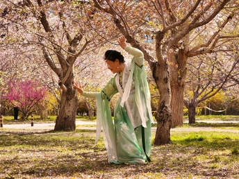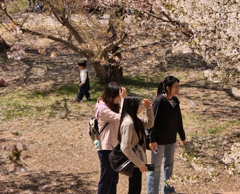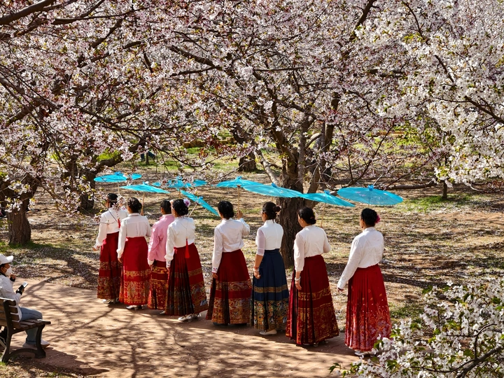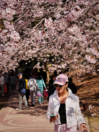 旅顺的樱花比去年开得晚一些,这一点也不影响游客游玩的热情。
