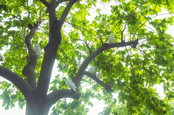 世界是巨大的迷宫,而我们是彼此的归途。 抬头看见鸽子的瞬间,光线从上打下来的时候比较强,但是能让树下的鸽子曝光正常,此刻的光线也比较柔和,是按下快门的好时机。