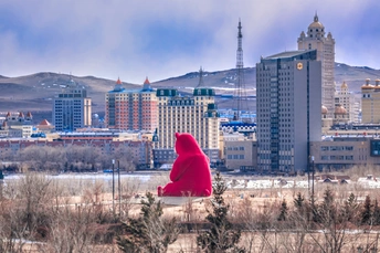 满洲里体育公园熊小满背身,满洲里中俄边境国门内拍摄俄罗斯轨道及城市风光