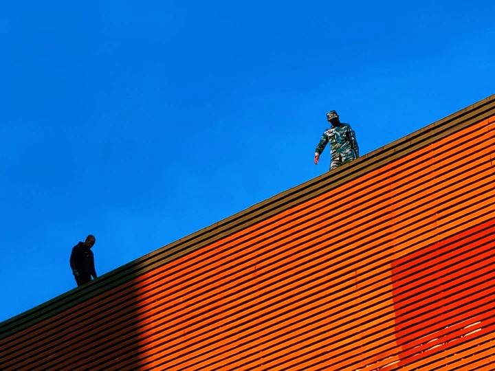 在高空中作业的工人