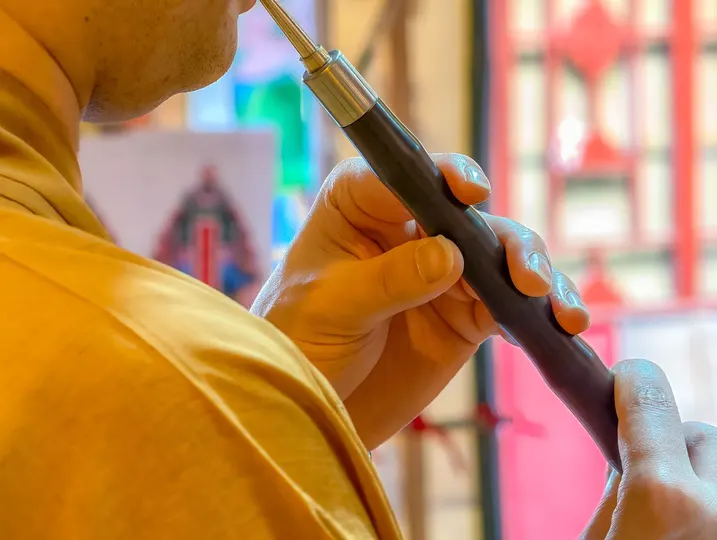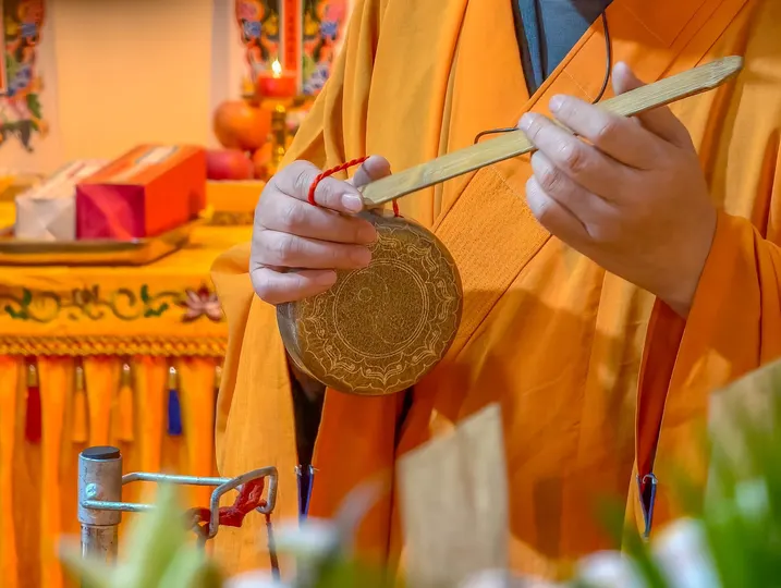 一场佛教法事,涉及多种乐器,说,唱,吹,奏……像一场乐会。