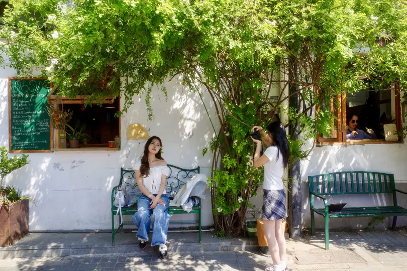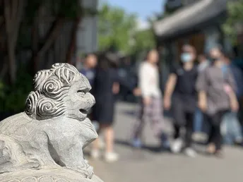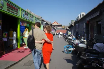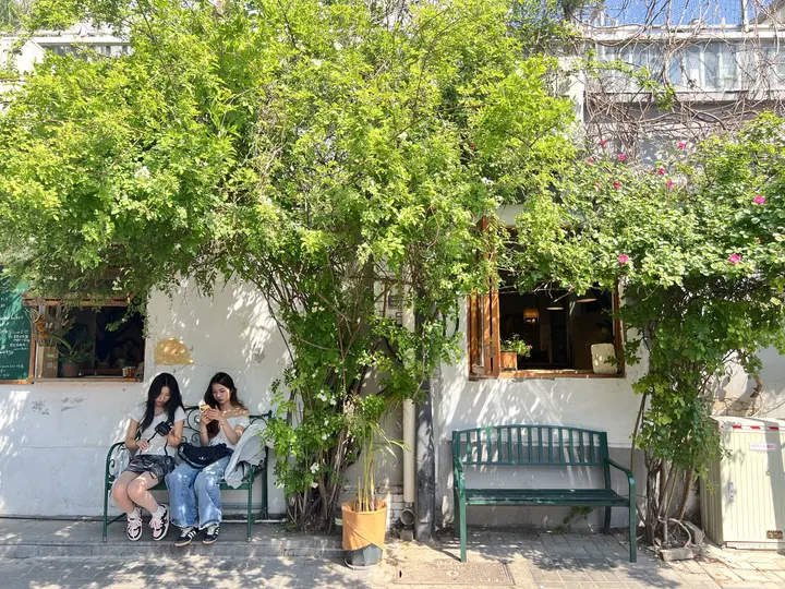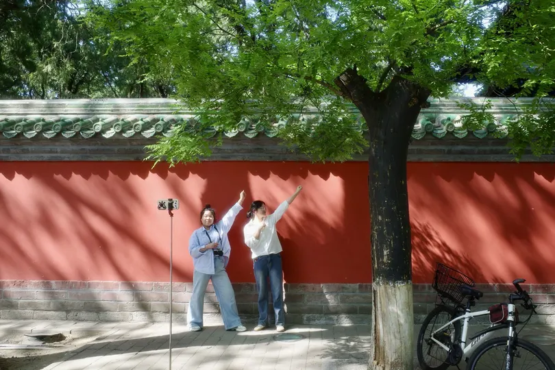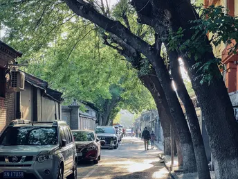 北京夏天的胡同 绿树成荫 人头攒动 在人相对不多的胡同里 边走边聊 是一件开心的事