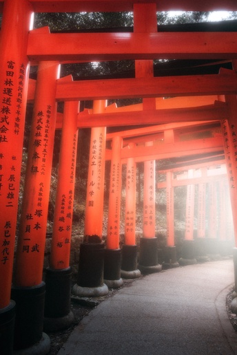 整齐排列的千本鸟居,林立在山间小道,就好像穿越了一场梦境,梦里是一道道时空之门,神秘,却令人神往